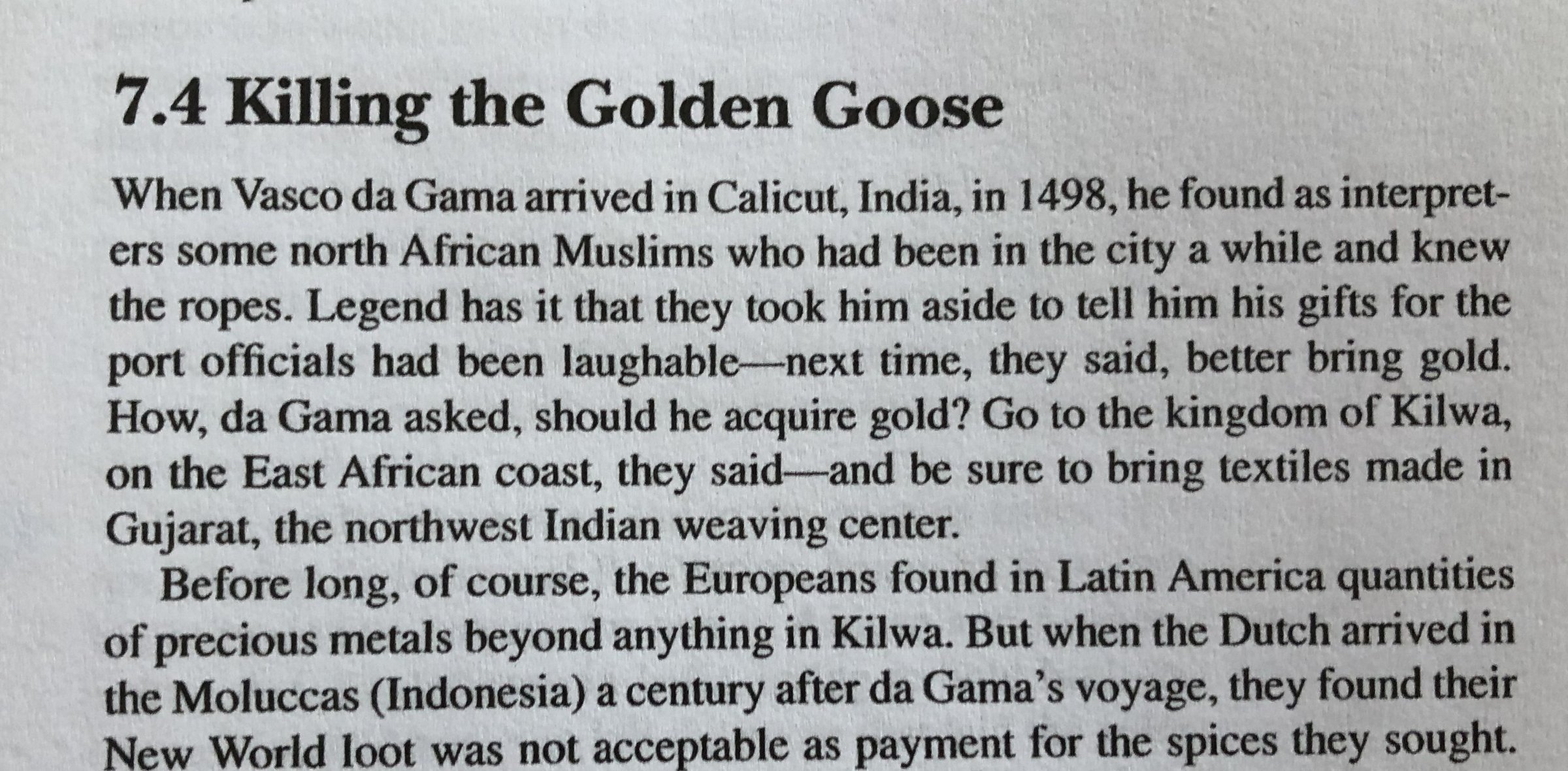 In that book, the trade of the 1500s and 1600s was already very sophisticated. Slaves were bought and sold from Africa. The chiefs in Africa and Asia wanted payment in goods, not silver, which was mainly of use to buy silk and porcelain from China.