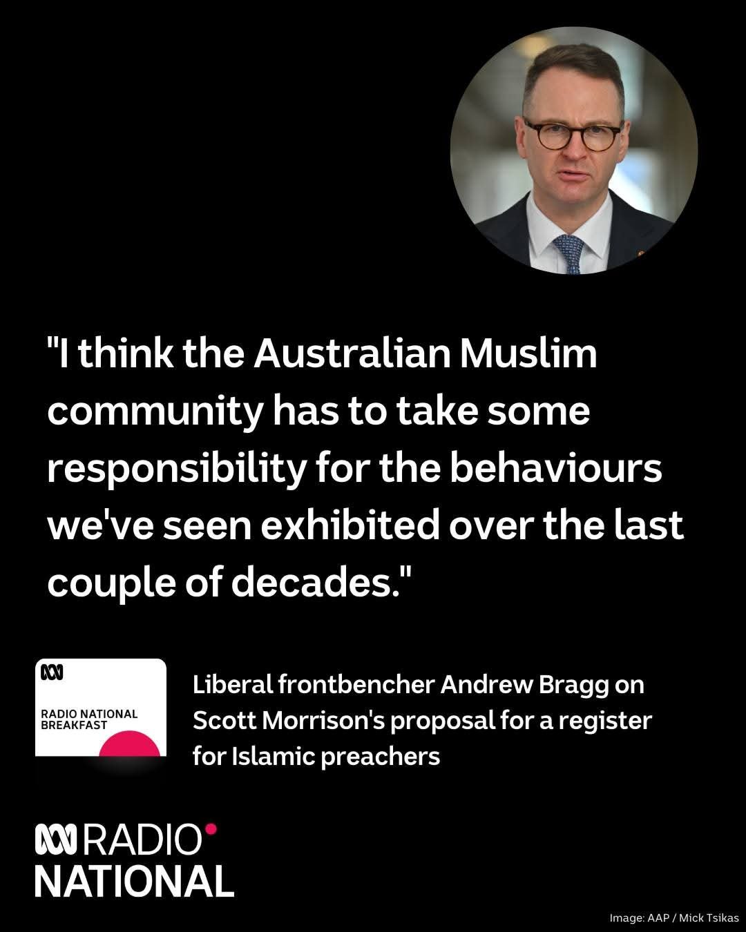 While Senator Bragg told ABC Radio National Breakfast that "elements" of the proposal were "worth looking at", Mr Morrison's comments have been criticised by the Muslim community and the federal government.
