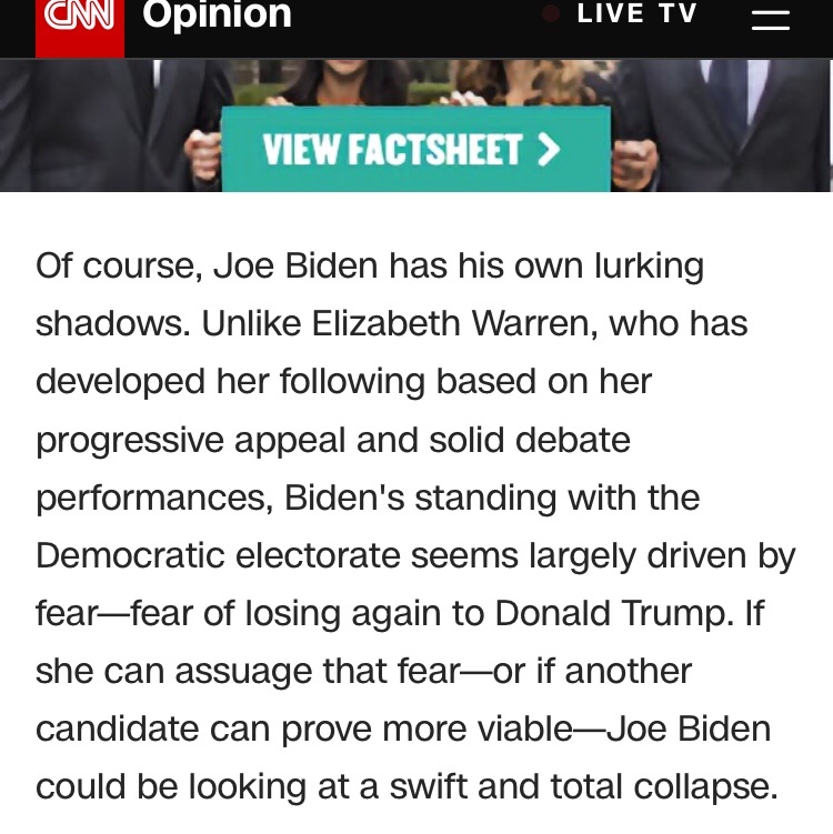 The poll is the first from the Des Moines Register, together with CNN and Mediacom, to put the two-term Massachusetts Democrat at the front of the pack, with 22 percent saying she was their first choice for president. Former vice president Joe Biden, who led the Register’s June poll, sits at 20 percent, putting the two in a statistical tie, far ahead of the rest of the field. Sen. Bernie Sanders (I-Vt.) slipped 5 percentage points to a distant third, at 11 percent.