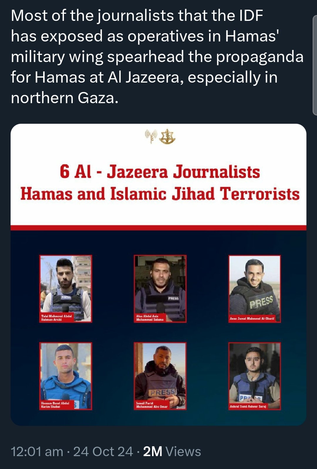 From the IDF twitter account. The last paragraph sums it up. They've labelled them terrorists because they don't like Al Jazeera reporting on their war crimes. These poor guys are as good as dead now.