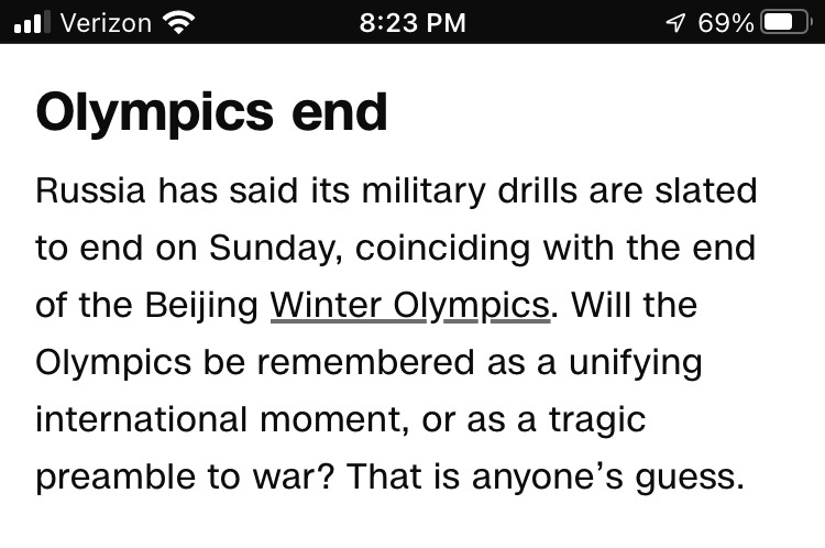 As soon as the Russian olympians are oit of China tanka will roll. If they lose the hockey final, even sooner.
