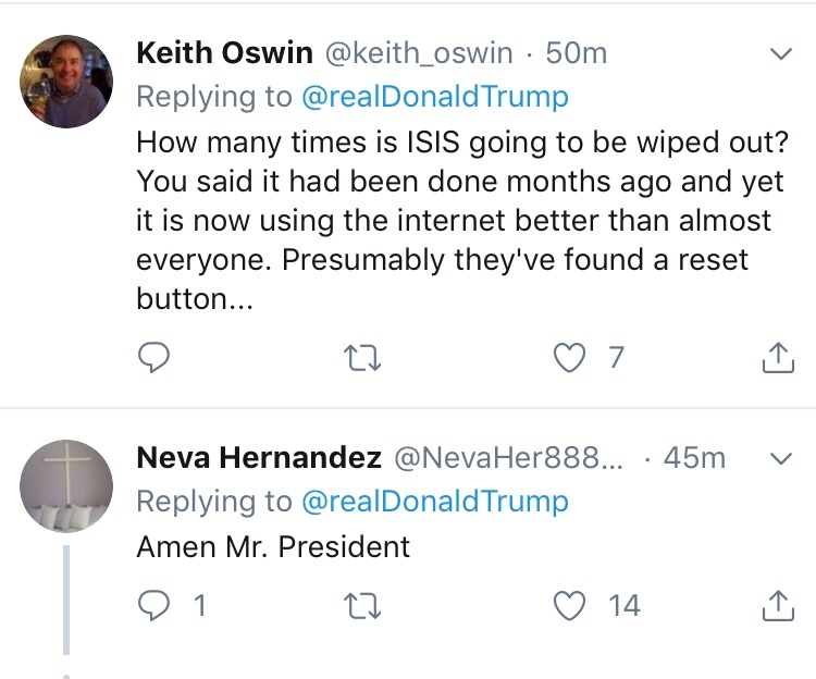 Trump beating Isis on a daily basis. Trump supporters want to remove Isis (the Muslims) from Congress.