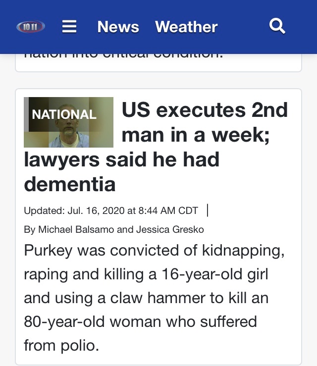 As the lethal chemical was injected, Purkey took several deep breaths and blinked repeatedly, laying his head back down on the gurney. His time of death was 8:19 a.m. EDT.