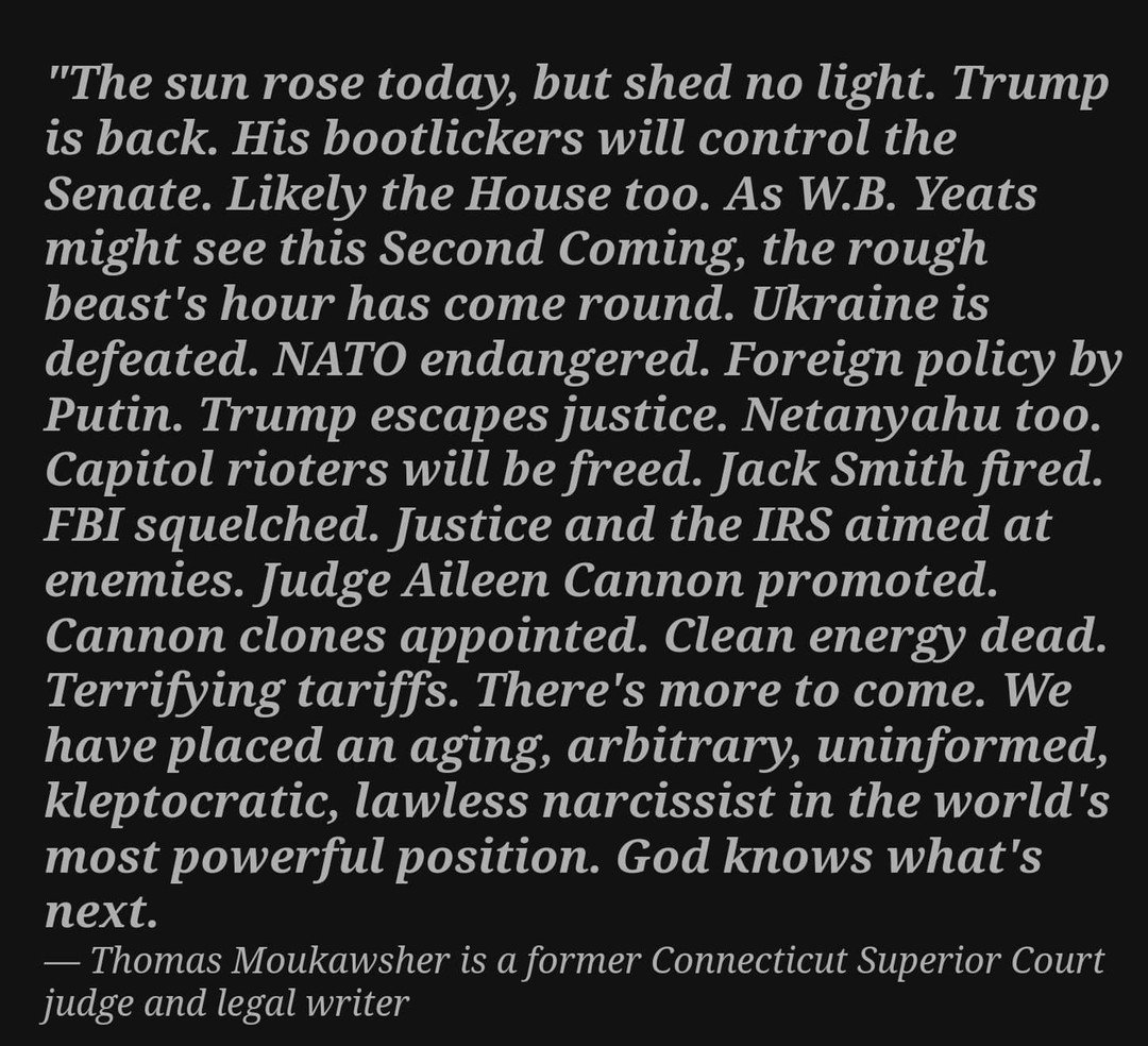 Added a bit to the very last entry in the blog. Which I don't know what to do with now. Not using it to follow the demise of America. It will be very easy for all to see.