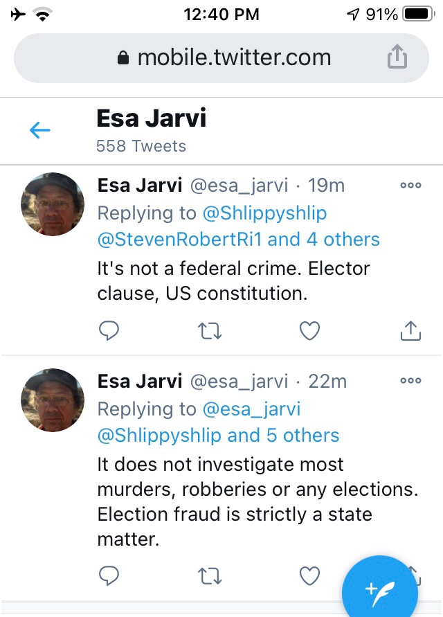 That was responding to a Trumpster who demanded that the FBI (why would he trust the FBI?) investigate the rigged Dominion voting machines "because they are made abroad."