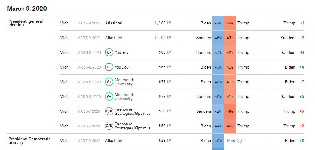 November will gain some more votes for Trump, as the pandemic will mostly be over. If it is not, he is toast. Right now, Michigan is running pretty even Trump vs Biden.