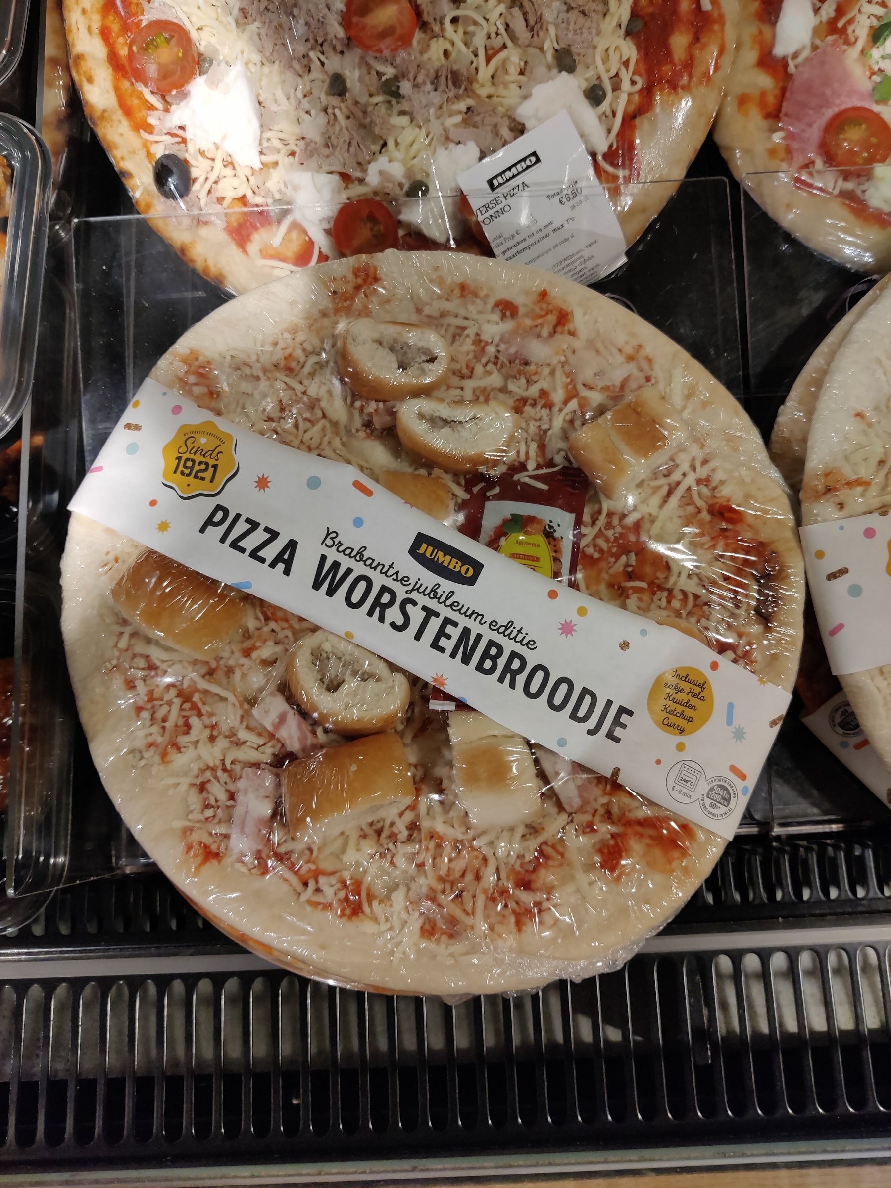 Where in the hell did you find that Nine? Everything is on a pizza these days but sausage rolls (worstenbroodjes)!