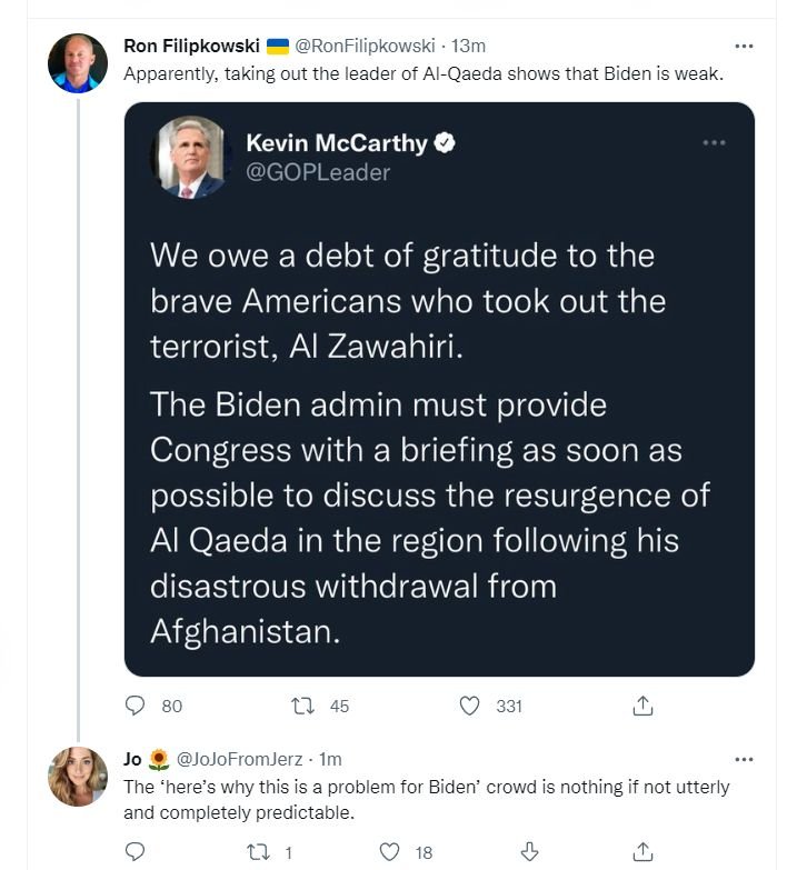 Did they just look him up in the yellow pages or what?L'Emmerdeur wrote: ↑Tue Aug 02, 2022 2:34 pmThe brave Americans who bravely sent a specialist bladed missile from a drone to rub out the zealot shitheel.![]()
