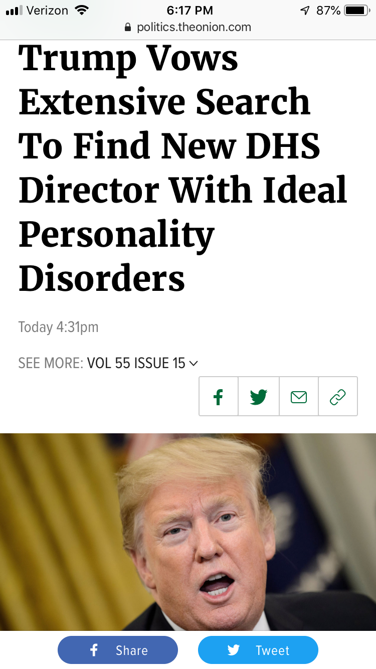 So apparently Kirstjen Njieljsejn is out because she's not cruel enough for the Trump administration. Who the hell are they going to replace her with, Adolf Eichmann's reanimated corpse? Palpatine? Blofeld?