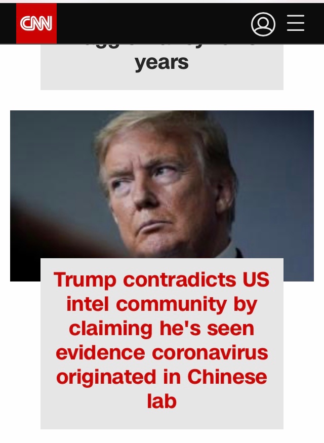 Well, let's be nuanced here. The intelligence report made it clear (as have scientists the world over) that it wasn't an artificial virus, or even one that had been genetically tweaked. Most probably, it was transmission from wildlife in a Chinese wet market. But there remains at least the possibility that it was a natural virus being studied/cultured in a lab (maybe Wuhan) and escaped...