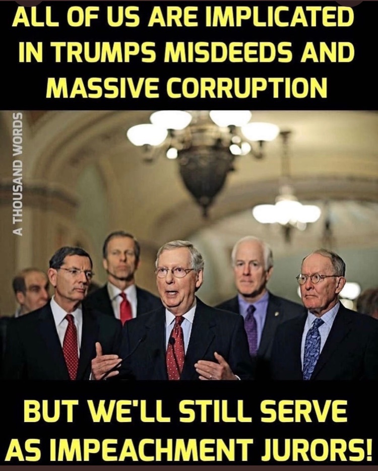 The impeachment process also brings new evidence to light. Who knows, it may swing some Repubs.Tero wrote:Sean's impeachment thinking is that we should never start any impeachment unless the votes are there in the senate to impeach.