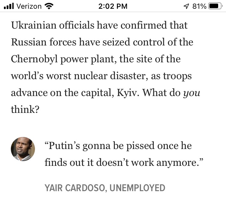I remember, and I really think most of us wanted to see Russia succeed.laklak wrote: ↑Thu Mar 03, 2022 5:42 pmNecessary unless we just let him take what he wants. Confiscate a few more oligarch's yachts and they'll take care of it for us.