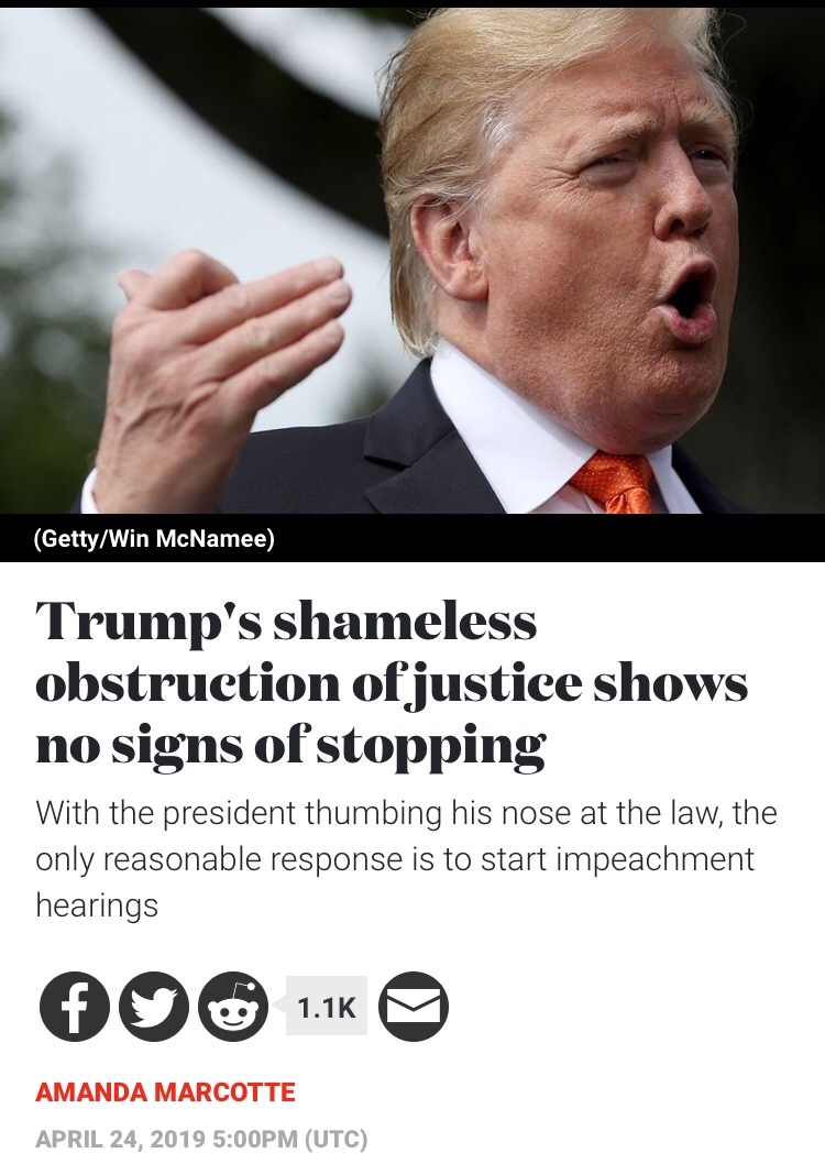 This echoes the behavior recorded by Mueller, who laid out an eye-poppingly extensive campaign by Trump to hide information, lie to prosecutors, and otherwise obstruct federal investigations into any potential misdeeds by Trump or his allies. Trump continues to — publicly, shamelessly — do everything in his power to obstruct justice and evade any efforts to learn more about his conflicts of interest and potential crimes.