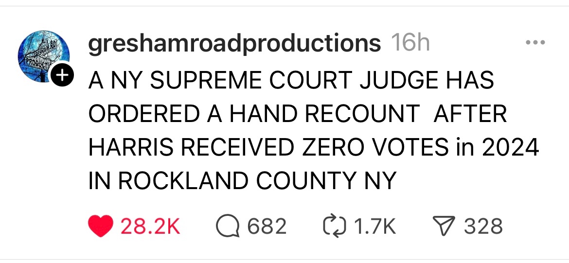 A county with high Jewish population. 300 votes for a democrat in the race, 500 for Trump and zero for Harris.