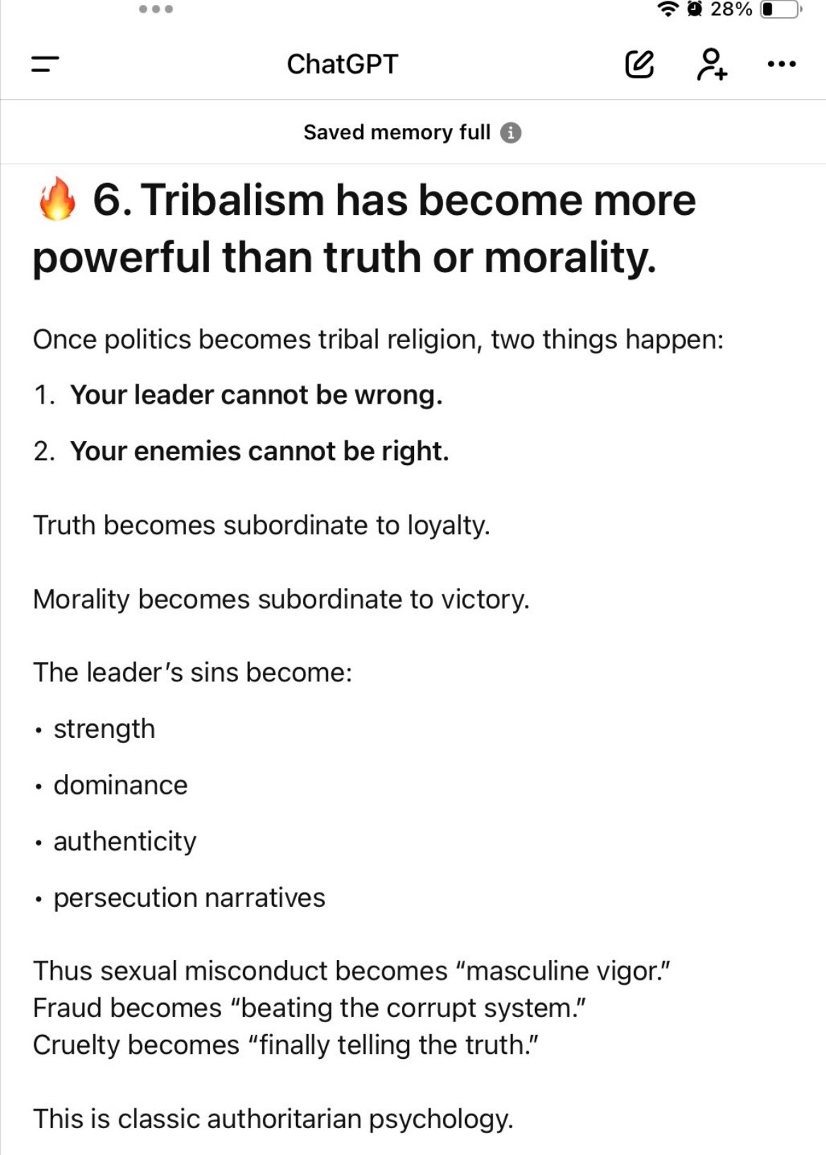 Not getting into Trump recent activities till noon. I have stuff to do. Weather improved. But in my general morning with coffee surfing ran into these. ChatGPT askes about Trump appeal. What will they do when the Messiah is dead?