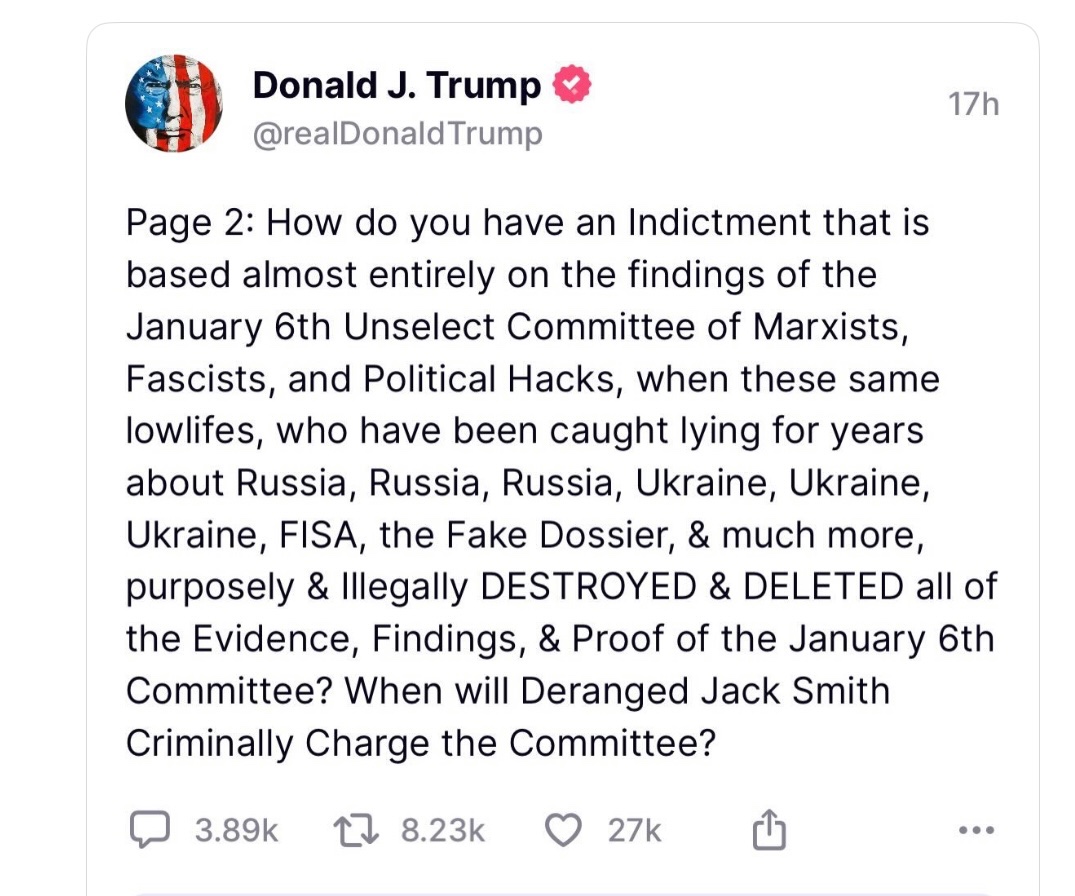 Nobody is being charged with having ridiculous beliefs or publicly expressing those beliefs. Please put that strawman back in the closet. You are spreading misinformation about the indictment to support your position that the indictment looks bad. If you think it looks bad, then please start telling the truth about it.