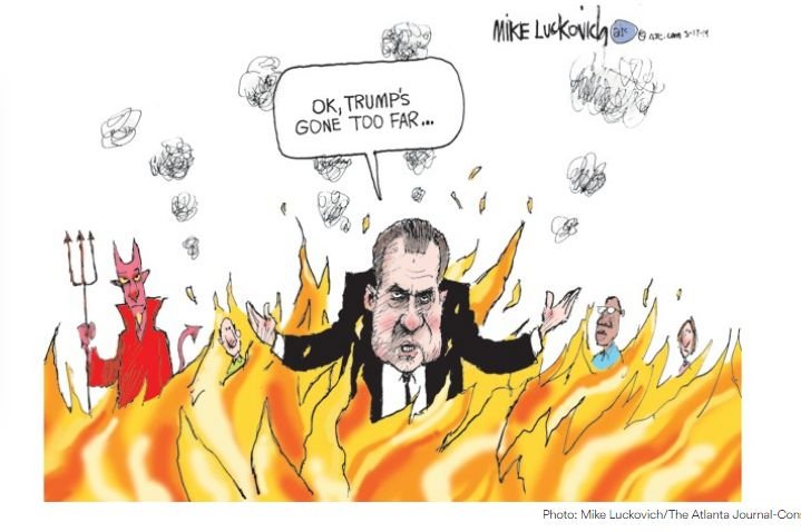 Donald Trump is falling, and like the babbling tangerine Goliath that he is, he’s falling hard. His collapse being slow and painful was a foregone conclusion; we knew from the start of this agonizing saga that he wouldn’t go easy. But we’re finally here in the midst of his hubristic end, and we finally get to watch him, not us, be tested – something at which, if we were to ever see his school transcripts, we would be able to confirm he isn’t especially good.