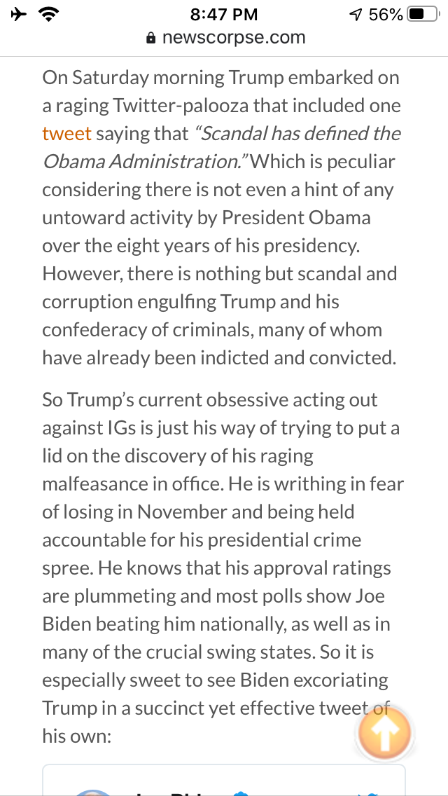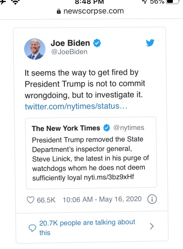 Someone somehow committed a crime according to some newspaper....Tyrannical wrote: ↑Sun May 17, 2020 1:56 amSomeone leaked a FISA court approved phone tap transcript to the press. I assume that is somehow illegalBarnettNewman wrote: ↑Sat May 16, 2020 8:24 pm