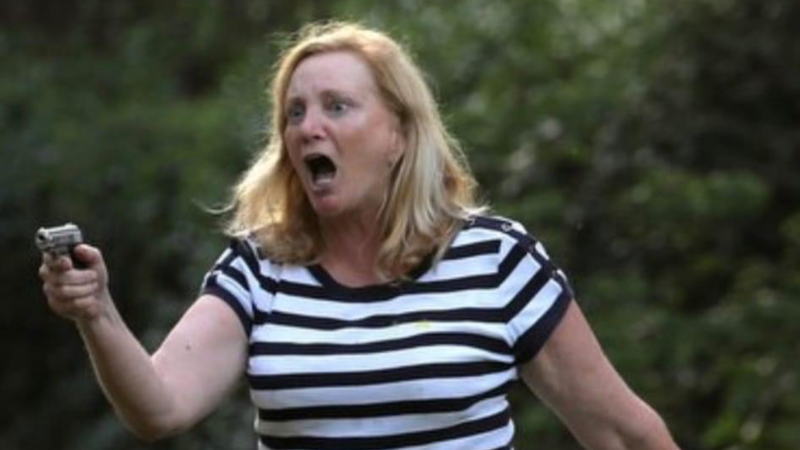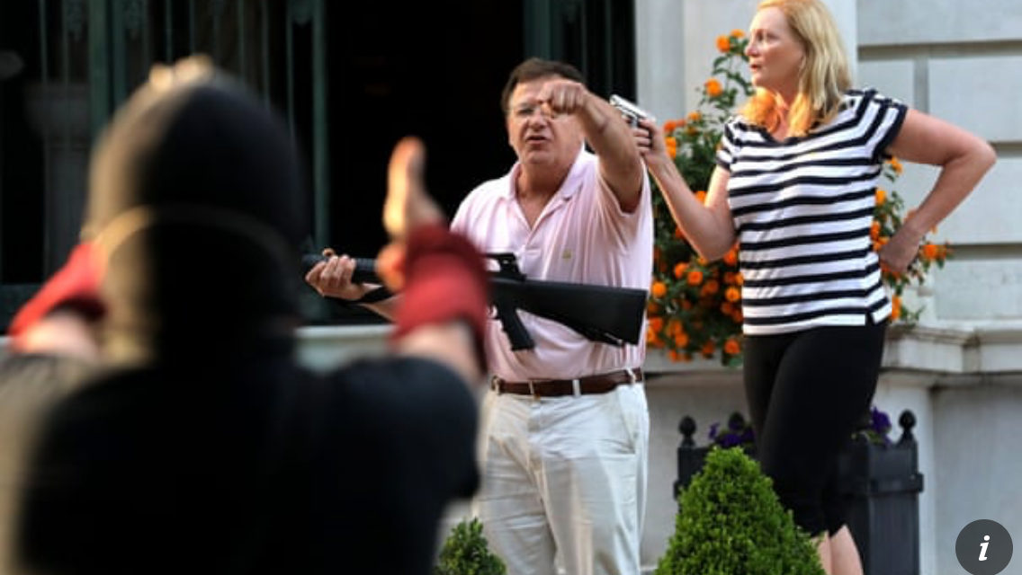 White folks, in front ofctheir home, bring a little excitement to protest agains St Louis mayor
