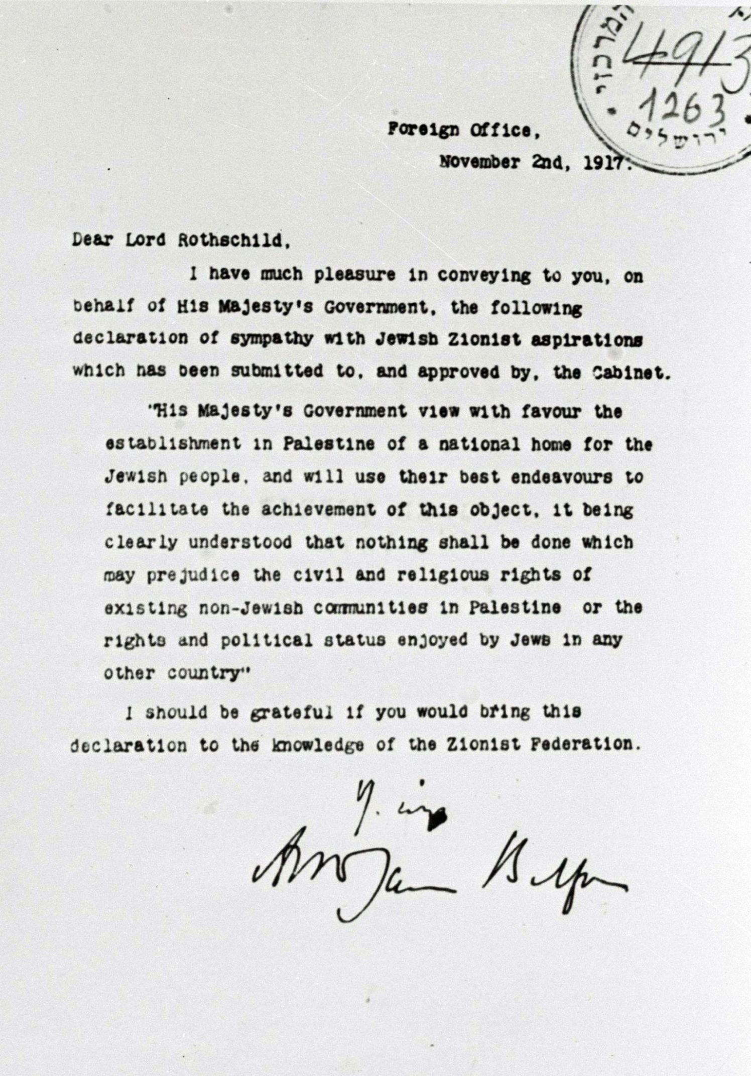 It is worth remembering that the impetus for the formation of a 'home' (not a State) goes back much earlier and is sometimes thought to originate in the desire to gain American (Jewish) support for WW1.