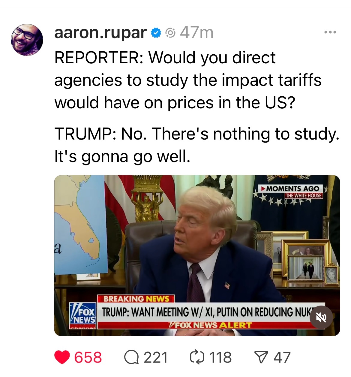 What tariffs? What countries? and yes, the stupid voters still believe China will paySean Hayden wrote: ↑Fri Feb 14, 2025 1:45 amMoney already studies tariffs, constantly.
