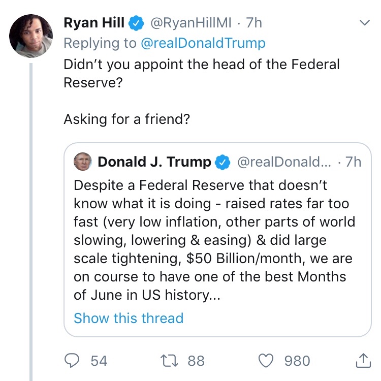 But it was Trump that hired Bolton and Pompeo in the first place! I'm baffled that anyone wants to give Trump praise for putting out his own fire. Giving Trump praise in this instance is like praising a bully for not beating another kid up and only taking his lunch money after having threatened to beat the kid up if he doesn't fork over his lunch money...Brian Peacock wrote: ↑Mon Jun 24, 2019 8:08 amSo he's a piece of shit for ordering the strike and a piece of shit for cancelling it. Ok, he's a piece of shit. Where does that leave us?