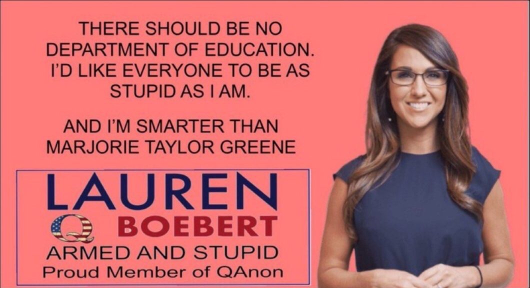 Boebert is promoting ignorance with her attack on the Department of Education, not stupidity. Those often overlap, but equating the two isn't particularly effective, in my opinion.