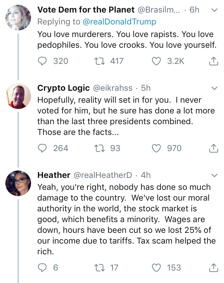 Brian Peacock wrote: ↑Sun Jun 30, 2019 12:43 pmNo. I accept that a N. Korea without nuclear weapons is better than the alternative, and while I'd happily acknowledge that, in the case of this hypothetical, the US's policy on NK would have been successful in achieving that specific goal the fact remains that Trump is a fucking piece of shit with a fucking piece of shit's attitudes and objectives. The administration may make the World a slightly less dangerous place in this one regard but its actions elsewhere -- around the globe and at home -- more than make up for that megre benefit, for example: emboldening Israel's expansionist military ambitions with respect to Palestinian land, picking fights with Iran after reneging on an agreed and binding treaty, destroying long-standing international diplomatic efforts to secure broader global peace and stability, siding with Vlad the Poisoner against the interests of his own people and wilfully ignoring all advice from the US's security organisations regarding the Kraken of the Kremlim, preferencing corporate greed and profiteering over the environment regardless of the evidence, separating the children of immigrants, asylum-seekers and refuges from their families and locking them in cages to rot, facilitating the religious imposition of state enforced pregnancy in the US, offering succour and support to the wannabe fascist bully-boys of the US alt-right and white supremacist movement, undermining press freedom, judicial due process and other democratic norms... the list goes on... and on...Rum wrote: ↑Sun Jun 30, 2019 10:31 amHere’s a question - if a slightly hypothetical one. If Trump pulls it off (no not that - denuclearisation of NK) would that in your view make his presidency a success despite his utterly shambolic approach to his agenda.