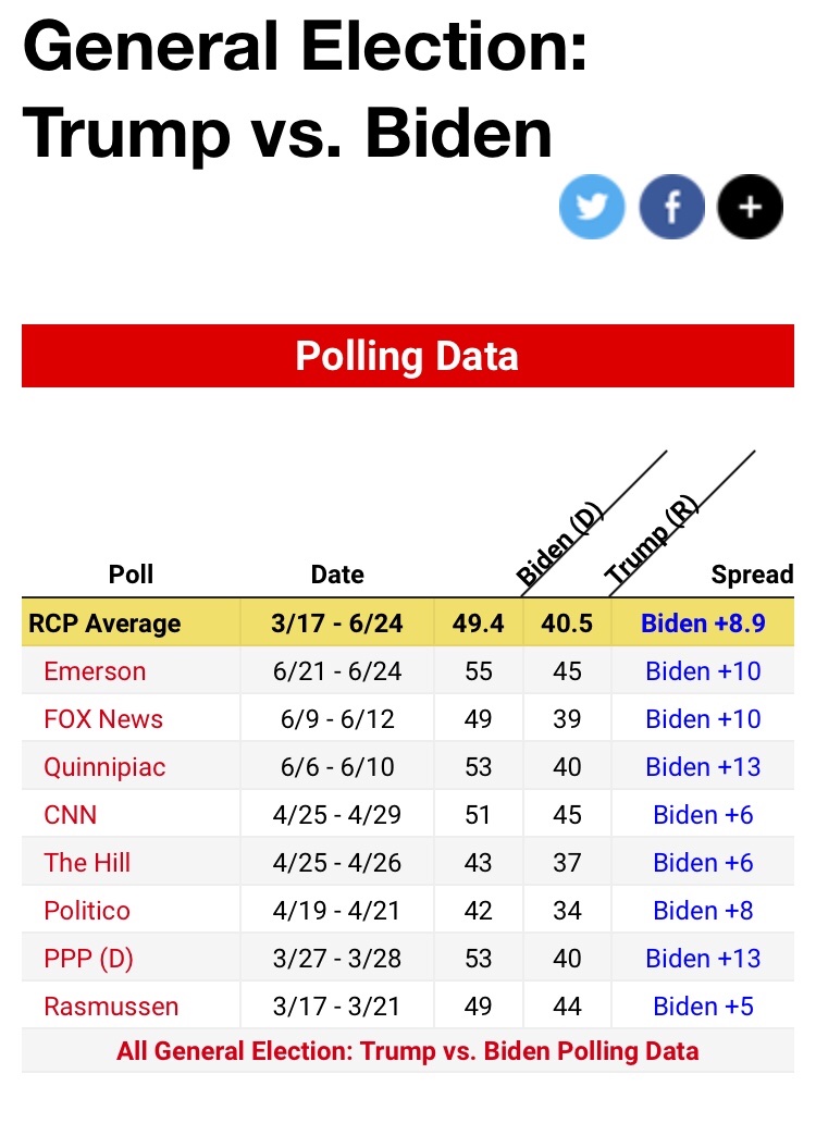 Biden not polling that well. Must not let Trump near 45% by election day. 40% we can deal with.