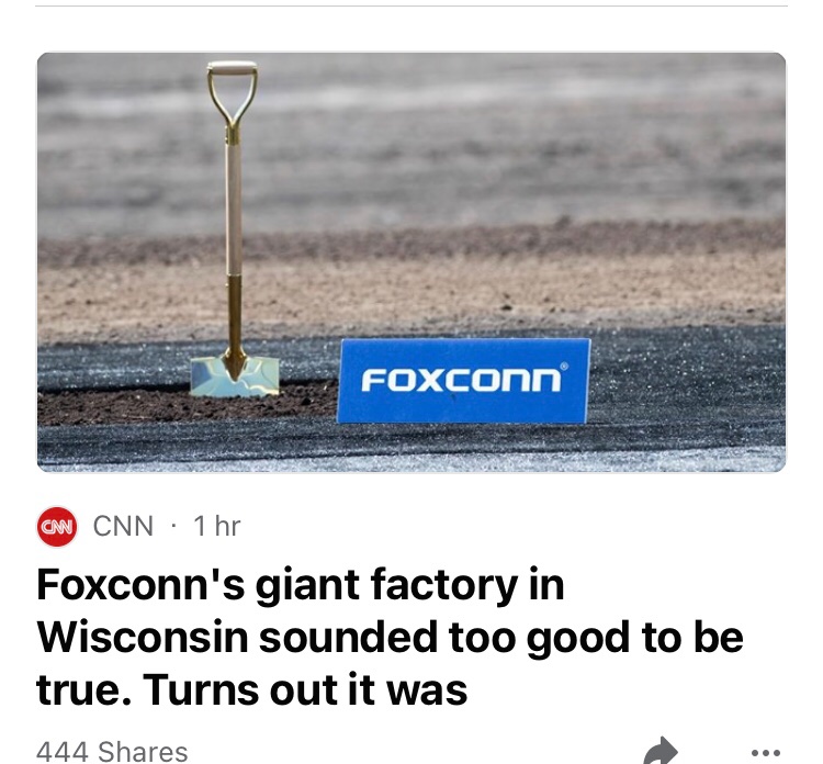 During the early days of the pandemic, Foxconn made face masks and ventilators at the Wisconsin plant. But the company hasn't revealed how much of its 1.4 million square feet, spread across three buildings, is now being used. It says its plans are based on "current projections for digital infrastructure hardware products through 2025," but did not provide any specifics about those products. The company says it currently has "several hundred" employees at the property.