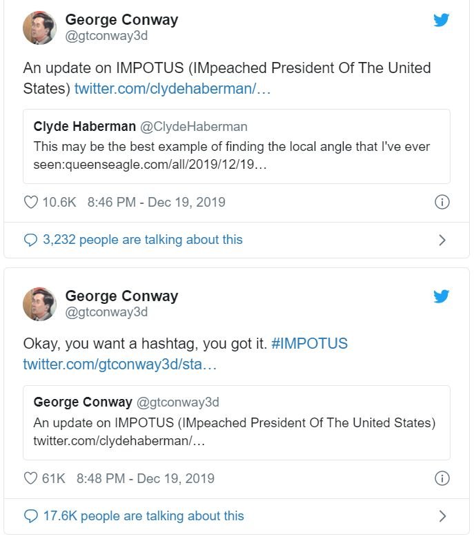 I'm seeing reports of people upset that he's still President, like they thought all you had to do is get the House to vote him out of office and he'd be gone. I find it hard to believe there are people that fucking stupid and ignorant who are allowed to vote and drive cars and live on their own without a minder, but then again, this is 'Murika, and any fucking thing is possible.