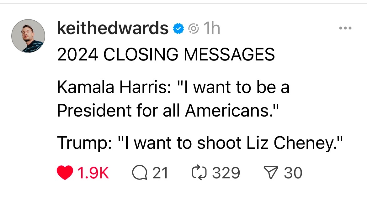 Rare footage of Trump team watching Kamala speech. He dictates some "tweets" and a staff member types them out. "Get that out there."