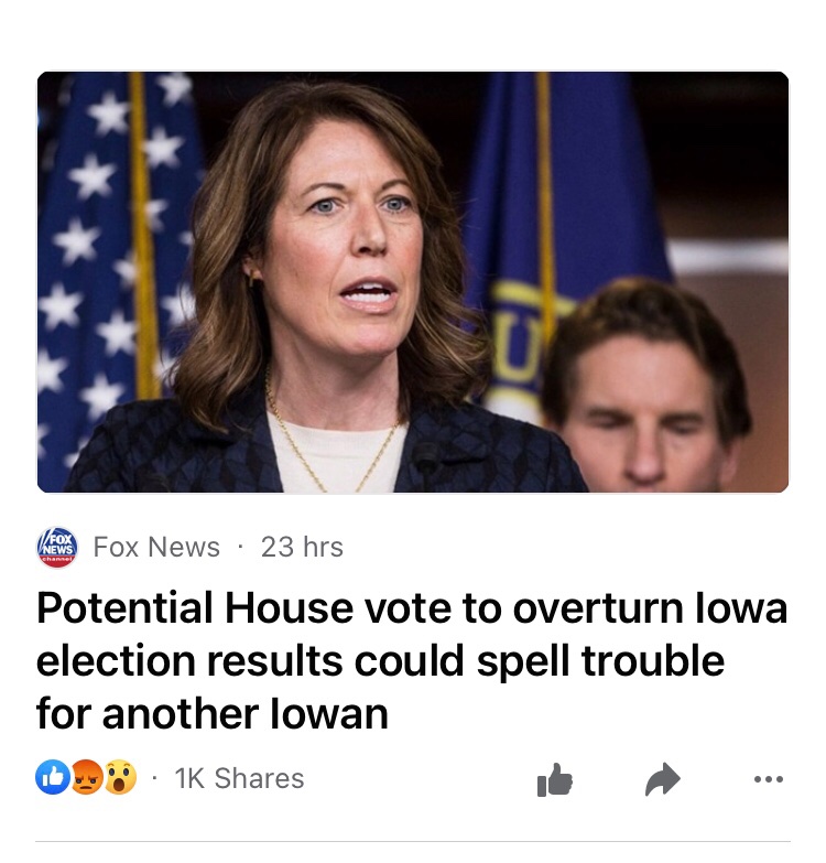 It is over. And the Iowa Democrat should go to her state to complain. A six vote win would require all kinds of checks. There might be 6 dead Republicans voting.