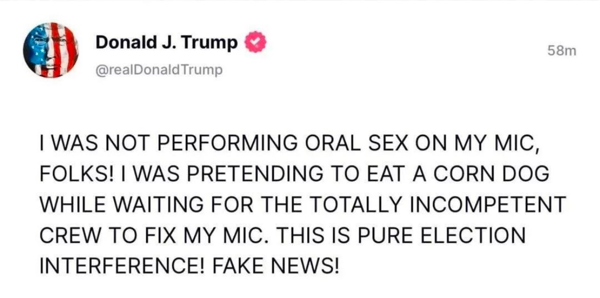 Having to qualify in all caps that you weren't falating a mic only makes it more ridiculous.