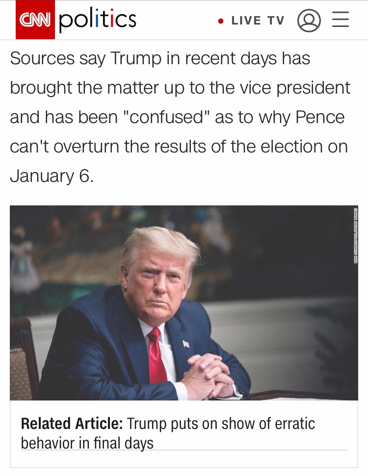 A classic example of the dangers of believing that the means (discarding democratic norms) justify the ends (saving God's Own Country from evil atheistic marxists)...L'Emmerdeur wrote: ↑Sun Dec 27, 2020 5:22 pmI think the most significant part of this is that it appears to show the tangible result of decades of right wing media demonizing the Democratic Party (in more extreme examples, literally claiming that the Democratic Party is controlled and inhabited by Satanists). The relevant quote: '[The Republican] base won't punish this sort of behavior [attempting to overturn an election], they'll likely applaud it.'