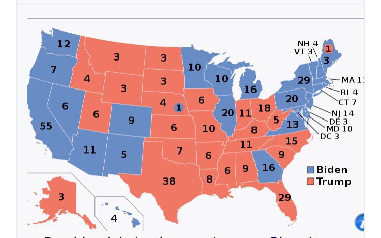 Both the House and the Senate would have to follow through on that. Perhaps there are enough Trumpist senators, but the House will not align with them. It isn't going to get to the point where the House votes directly (one vote per delegation) for the next president.Tero wrote: ↑Fri Jan 01, 2021 1:40 pmJust looking at the states: start at 306 for biden, subtract from that till you get below 270.
