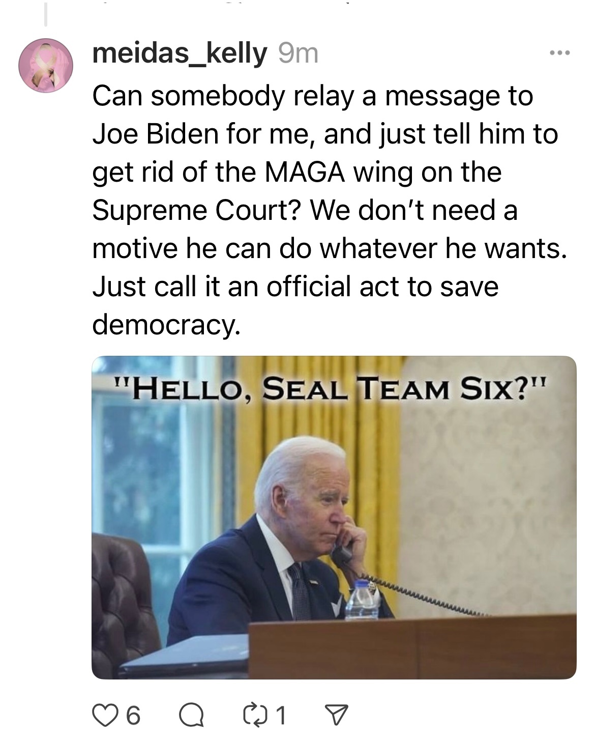 Biden can now send Seal Team 6 to assassinate Trump. He can only be impeached for that