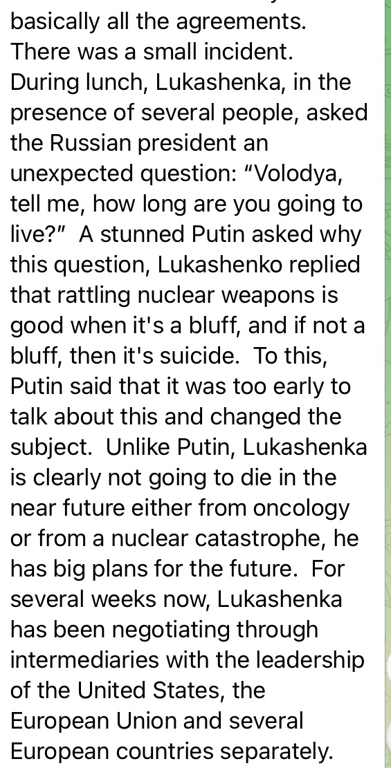 Putin's dinner did not go well. Lukashenka only agreed that Belarus would sew uniforms for him.