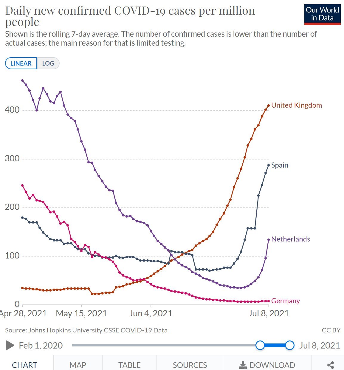 Majority here is young people going to clubs etc. The hospital numbers are still falling. Any its fairy data. Who is being tested anyway? Young people going on holiday.