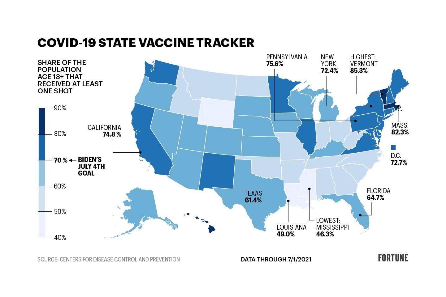 Map of vaccinations. Wyoming (white) is about 40%. Missouri matches the hillbillies in Arkanasas below it. NE, KS and CO seem to be roughly of the same mind, 50-53% vaccinated.