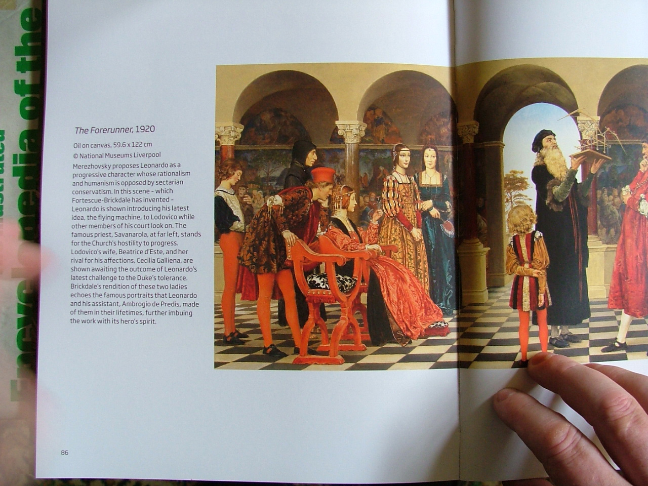 Next, an interesting work, The Guardian Angel (The Genius Of Flight), which, in the bottom three small panels, features Leonardo da Vinci and Icarus flanking a depiction of what would be in her day a modern aviator. A fascination with flight appears in several of her works, along with a fascination for Leonardo da Vinci.