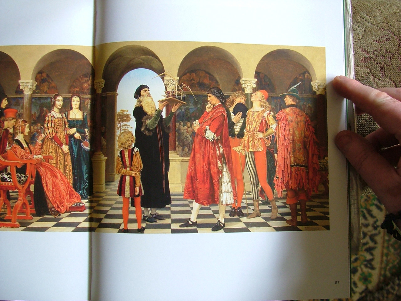 Finally, we have The Prior's Niece (1932), from which this is a detail shot. Originally conceived as a depiction of a scene from the poem Fra Lippo Lippi, the central character is actually a minor player in the poem, the beautiful niece of a member of the religious order to which Fra Lippo Lippi belongs, and whom he is sketching in order to illustrate the principles of artistic fidelity, whilst trying not to allow the woman's beauty to distract him from the spiritual matters that he and his fellow monks regard as more worthy subjects. Once again, most here will be rolling their eyes and thinking "bloody religion" ...