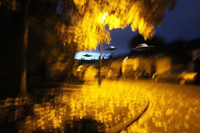 The alien is on the left. Need some camera shake cos they are stealthy but you can see the walking cloud of nanobots if you try hard.