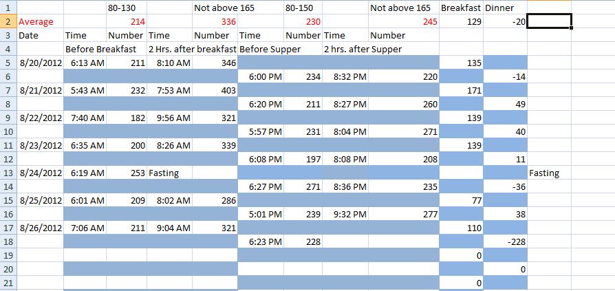 I need help with a spread sheet. I'm supposed to check my blood sugar four times a day now, and I want to use a spreadsheet to keep score.