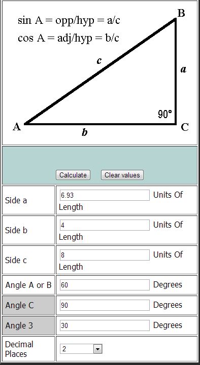 If you have 60° angles all around, all sides are the same length.Gawdzilla Sama wrote:So, I have two 8' ladders, 60° angles all around (two right triangles back to back.) The base would be ~7'.