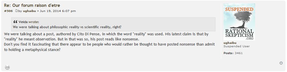 Man, it's 2.20am and I can't stop reading that "metaphysical reality" thread over at ratskep that Samsa linked to earlier (edit: it's actually a different thread that's converged on the same topic; the same topic that generates thousands of posts every couple of months..