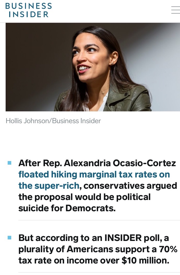 They were given a clean fact check record, but this article seems to suggest some doubt about that. How would this article fair in a "fact check?" They cite their own poll and they want to say they have a "plurality" in favor of the tax hike. However, if 38.7 are in favor, and 34.4 oppose, and only 13.5% have no opinion - what opinion do the remaining 13.4% have? Their not in favor, they're not opposed, and they're not of "no opinion." What was the other categor(ies)? https://www.businessinsider.com/a-70-ta ... uts-2019-1