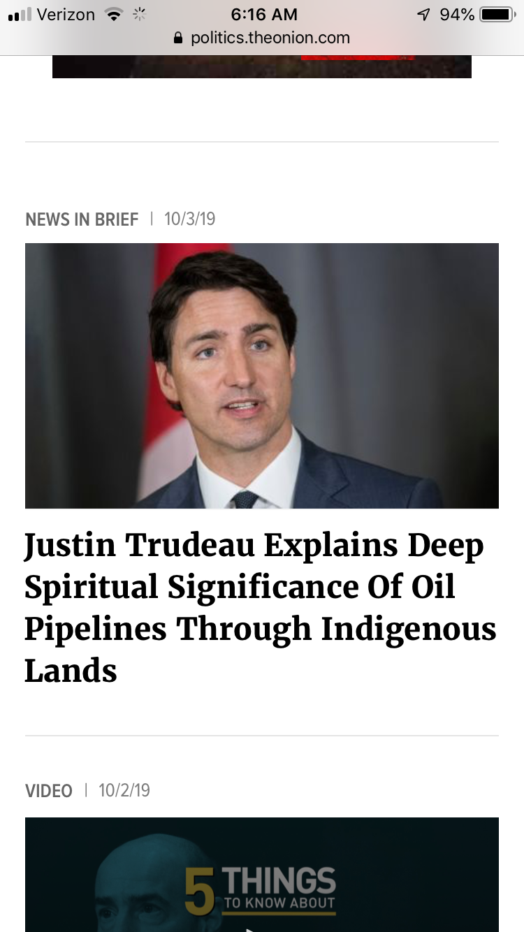 ....” said Trudeau, who described his participation in age-old rites in which his family and friends would prostrate themselves before pipelines, praying for the safe passage of the petroleum within. “Just as the smokestack rises from the ground, so too must the pipe go beneath the earth. The Creator has imbued the sands of this province with great bounty, and with the proper offerings of oil company subsidies and construction grants, we may be so blessed as to profit from its gifts.” At press time, Trudeau had concluded his remarks by inviting members of the press to join him in a traditional pipeline-blessing ceremony, beginning with the ritual application of refined black oil all over one’s face and body
