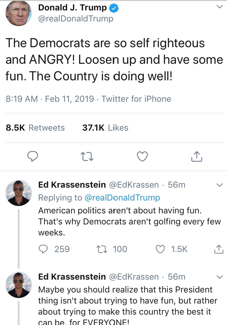 Mr Lets’s Have Fun. Prostate might be bothering him. He hasn’t had fun since he pulled out of Stormy. Cranky old man with no wall.