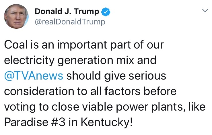 Old man ranting about coal through his telegraph...I mean twitter.